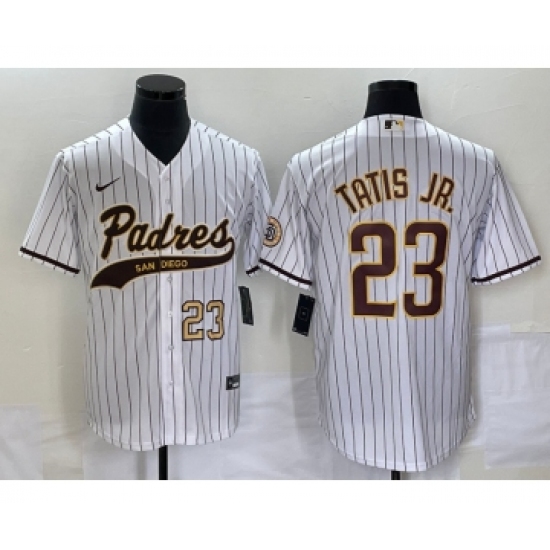 >Men's San Diego Padres #23 Fernando Tatis Jr Number White NEW 2023 Cool Base Stitched Jersey