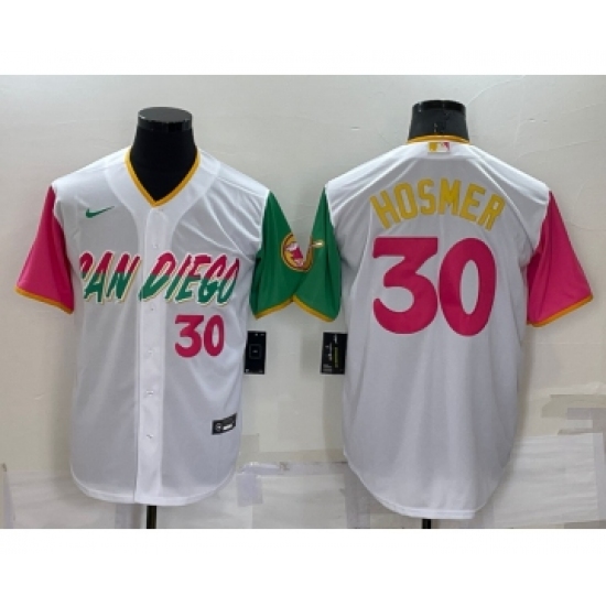 Men's San Diego Padres #30 Eric Hosmer White Number 2022 City Connect Cool Base Stitched Jersey