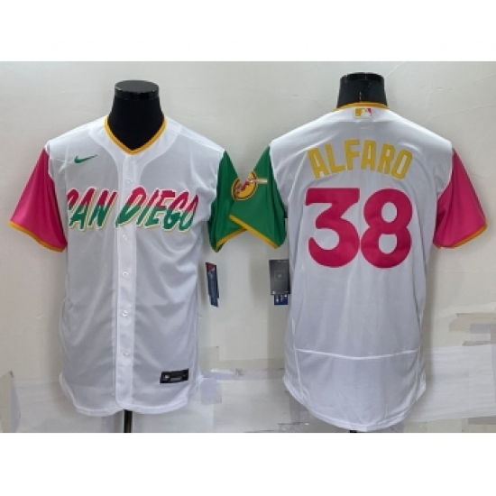>Men's San Diego Padres #38 Jorge Alfaro White 2022 City Connect Flex Base Stitched Jersey
