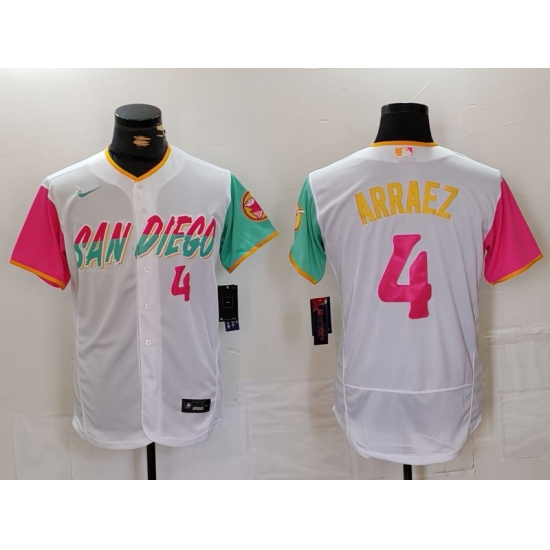 Men's San Diego Padres #4 Luis Arraez Number White 2023 City Connect Flex Base Stitched Jersey