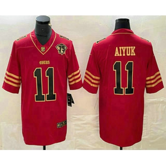 Men's San Francisco 49ers #11 Brandon Aiyuk Red 75th Golden Edition Stitched Nike Limited Jersey