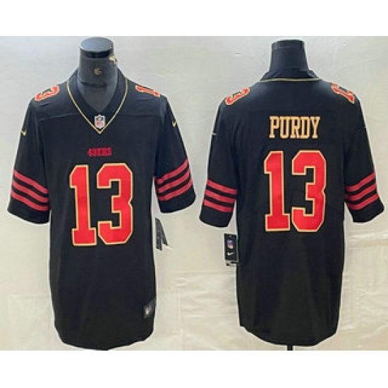 >Men's San Francisco 49ers #13 Brock Purdy Black Gold Fashion Vapor Limited Stitched Jersey
