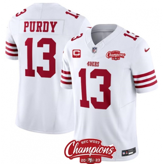 Men's San Francisco 49ers #13 Brock Purdy White 2023 F.U.S.E. NFC West Champions Alternate Football Stitched Jersey