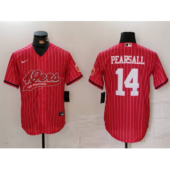 Men's San Francisco 49ers #14 Ricky Pearsall Red Pinstripe With Cool Base Stitched Baseball Jersey
