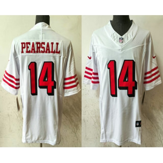 >Men's San Francisco 49ers #14 Ricky Pearsall White FUSE Vapor Limited Throwback Stitched Jersey