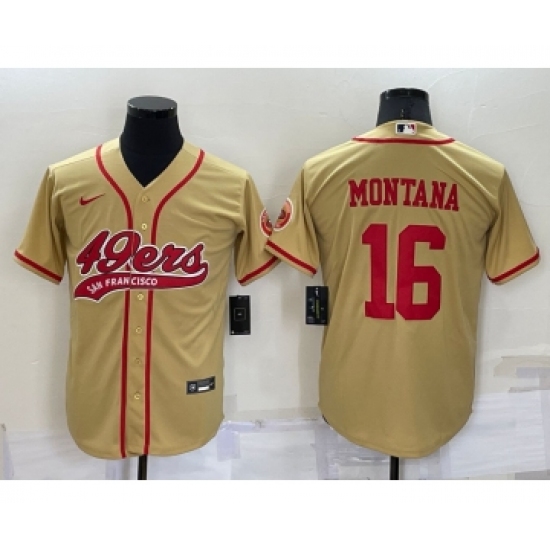 Men's San Francisco 49ers #16 Joe Montana Gold Stitched Cool Base Nike Baseball Jersey