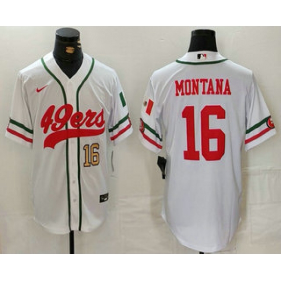 Men's San Francisco 49ers #16 Joe Montana Number White Mexico Cool Base Stitched Baseball Jersey