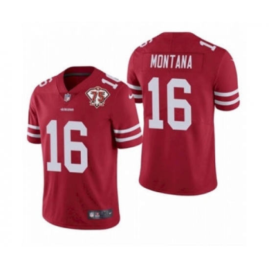 >Men's San Francisco 49ers #16 Joe Montana Red 2021 75th Anniversary Vapor Untouchable Limited Jersey