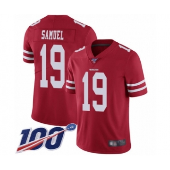 Men's San Francisco 49ers #19 Deebo Samuel Red Team Color Vapor Untouchable Limited Player 100th Season Football Jersey
