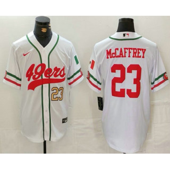 Men's San Francisco 49ers #23 Christian McCaffrey Number White Mexico Cool Base Stitched Baseball Jersey