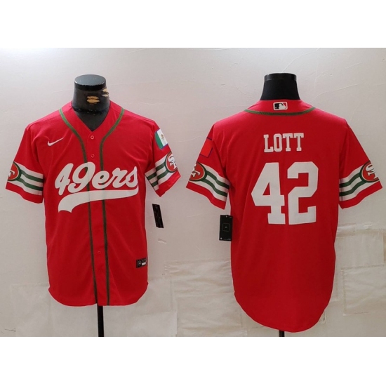 Men's San Francisco 49ers #42 Ronnie Lott Red Mexico Cool Base Stitched Baseball Jersey