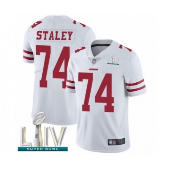 >Men's San Francisco 49ers #74 Joe Staley White Vapor Untouchable Limited Player Super Bowl LIV Bound Football Jersey
