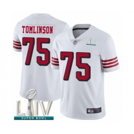 >Men's San Francisco 49ers #75 Laken Tomlinson Limited White Rush Vapor Untouchable Super Bowl LIV Bound Football Jersey