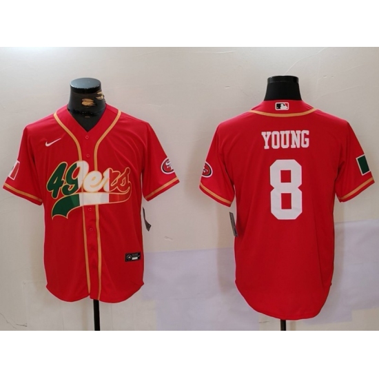 Men's San Francisco 49ers #8 Steve Young Red With Cool Base Stitched Baseball Jerseys