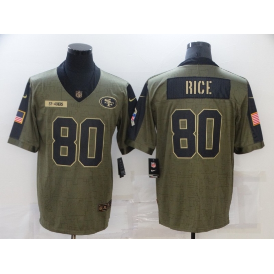 >Men's San Francisco 49ers #80 Jerry Rice Nike Olive 2021 Salute To Service Limited Player Jersey
