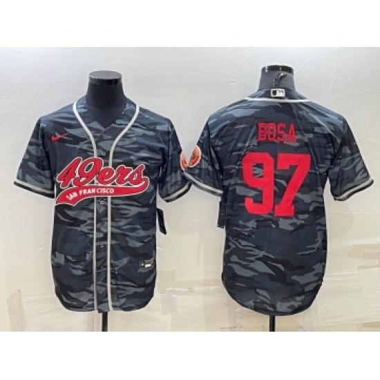 Men's San Francisco 49ers #97 Nike Bosa Grey Camo With Patch Cool Base Stitched Baseball Jersey