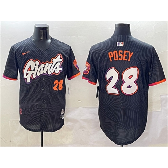 >Men's San Francisco Giants #28 Buster Posey Anthracite 2025 City Connect Limited Stitched Baseball Jersey