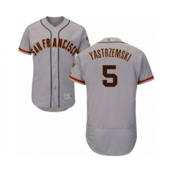 >Men's San Francisco Giants #5 Mike Yastrzemski Grey Road Flex Base Authentic Collection Baseball Player Jersey