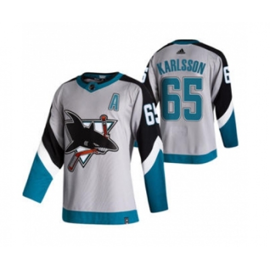 Men's San Jose Sharks #65 Erik Karlsson Grey 2020-21 Reverse Retro Alternate Hockey Jersey