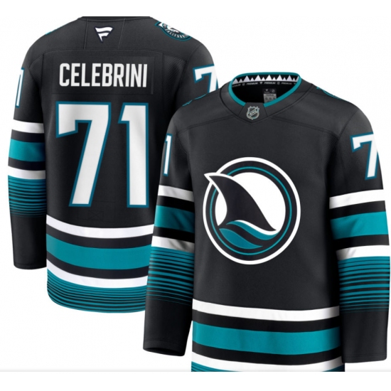 >Men's San Jose Sharks #71 Macklin Celebrini Black 2024-25 Home Stitched Hockey Jersey