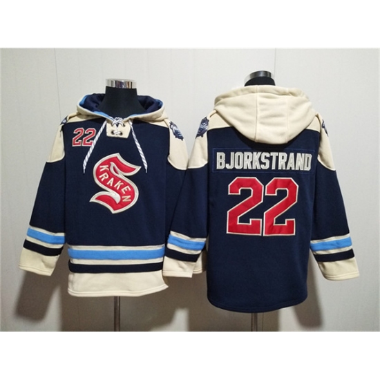 >Men's Seattle Kraken #22 Oliver Bjorkstrand Deep Sea Blue Lace-Up Pullover Hoodie