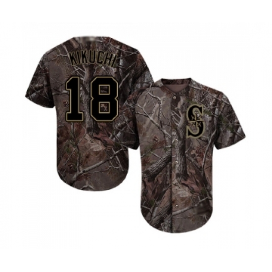 >Men's Seattle Mariners #18 Yusei Kikuchi Authentic Camo Realtree Collection Flex Base Baseball Jersey