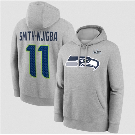 >Men's Seattle Seahawks #11 Jaxon Smith-Njigba Heather Gray 2025 Super Bowl LX Patch Name & Number Hoodie