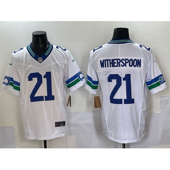 >Men's Seattle Seahawks #21 Devon Witherspoon White F.U.S.E. Throwback Vapor Limited Football Stitched Jersey