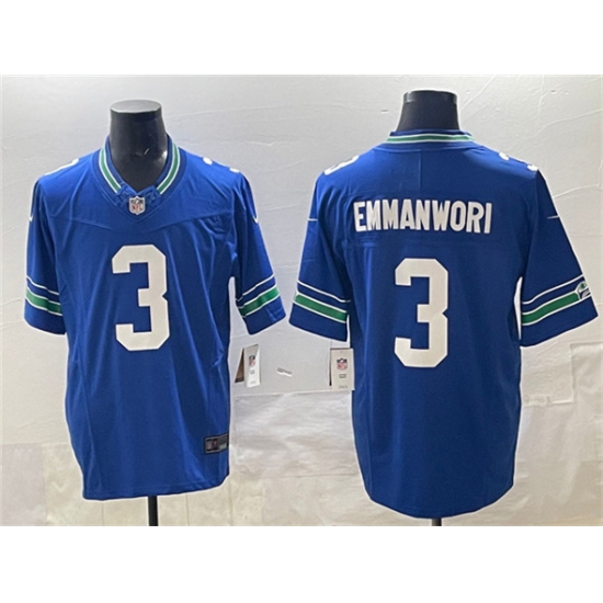 >Men's Seattle Seahawks #3 Nick Emmanwori Royal 2024 F.U.S.E Throwback Vapor Limited Football Stitched Jersey