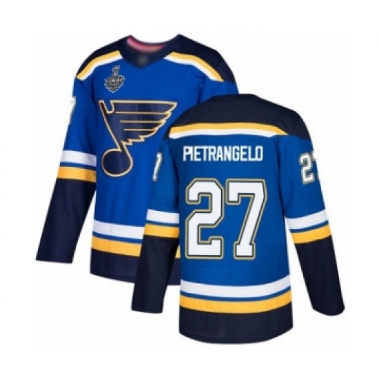>Men's St. Louis Blues #27 Alex Pietrangelo Premier Royal Blue Home 2019 Stanley Cup Final Bound Hockey Jersey