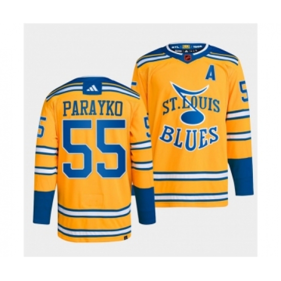 >Men's St. Louis Blues #55 Colton Parayko Yellow 2022-23 Reverse Retro Stitched Jersey