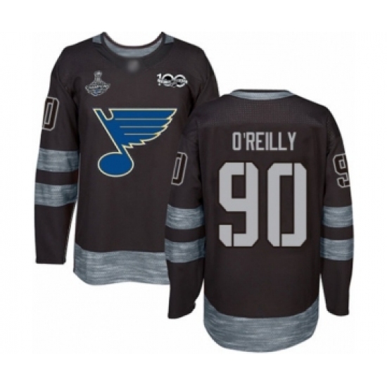 Men's St. Louis Blues #90 Ryan O'Reilly Authentic Black 1917-2017 100th Anniversary 2019 Stanley Cup Champions Hockey Jersey