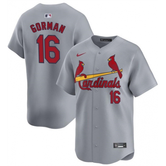 Men's St. Louis Cardinals #16 Nolan Gorman Gray 2024 Away Limited Stitched Baseball Jersey