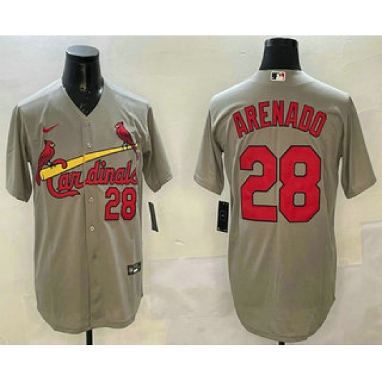 Men's St Louis Cardinals #28 Nolan Arenado Number Grey Stitched Cool Base Nike Jersey