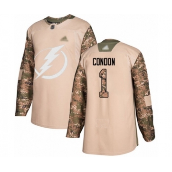 Men's Tampa Bay Lightning #1 Mike Condon Authentic Camo Veterans Day Practice Hockey Jersey