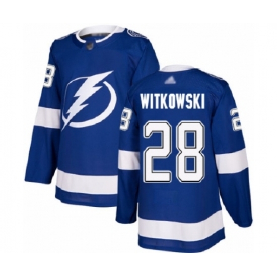 >Men's Tampa Bay Lightning #28 Luke Witkowski Authentic Royal Blue Home Hockey Jersey