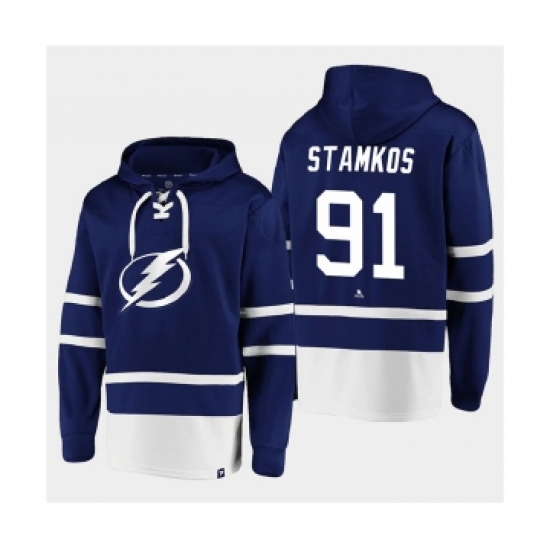 Men's Tampa Bay Lightning #91 Steven Stamkos Blue All Stitched Sweatshirt Hoodie