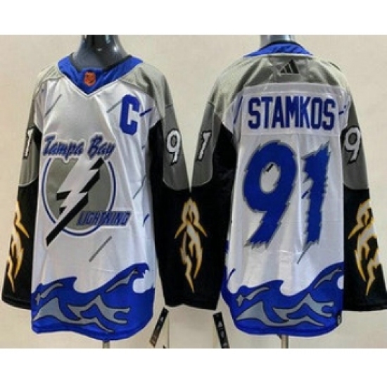 Men's Tampa Bay Lightning #91 Steven Stamkos White 2022 Reverse Retro Authentic Jersey