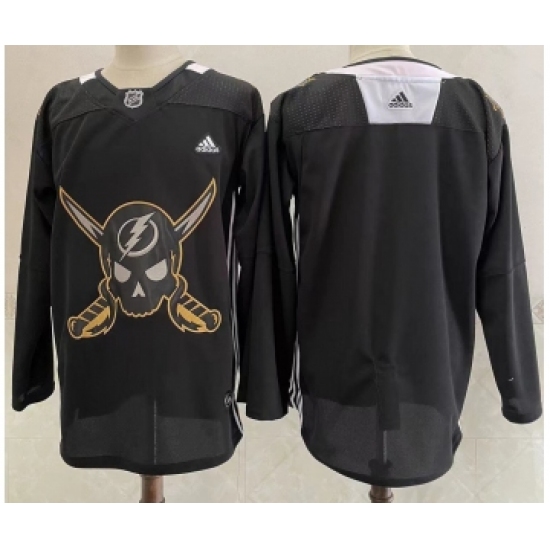 >Men's Tampa Bay Lightning Blank Black Pirate Themed Warmup Authentic Jersey