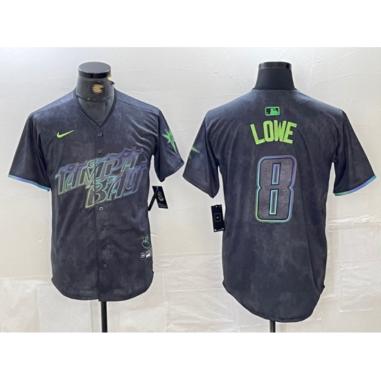 >Men's Tampa Bay Rays #8 Brandon Lowe Charcoal 2024 City Connect Limited Cool Base Jersey