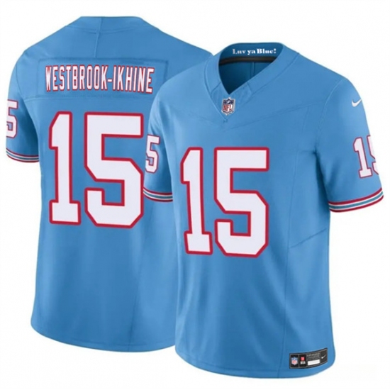 >Men's Tennessee Titans #15 Nick Westbrook-Ikhine Blue 2024 F.U.S.E. Throwback Vapor Limited Football Stitched Jersey