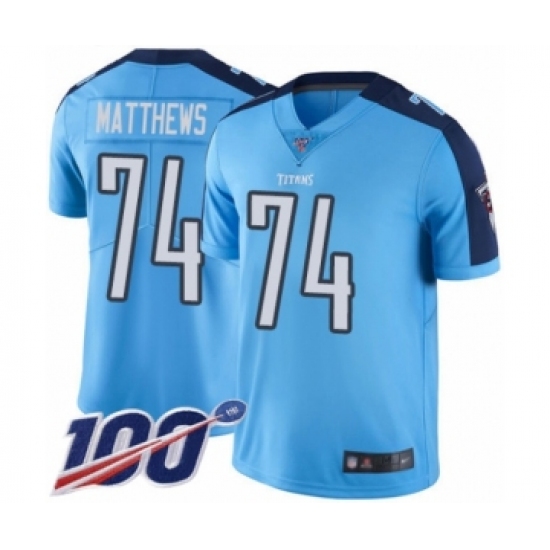 Men's Tennessee Titans #74 Bruce Matthews Limited Light Blue Rush Vapor Untouchable 100th Season Football Jersey