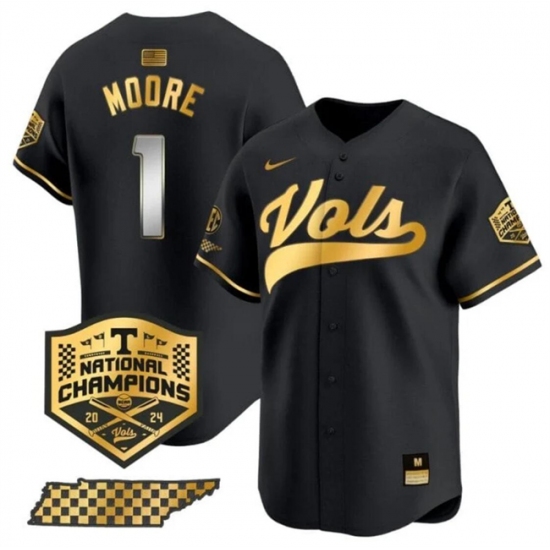 Men's Tennessee Volunteers #1 Christian Moore Black Gold 2024 Champions Vapor Limited Stitched Jersey