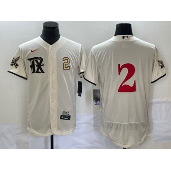 Men's Texas Rangers #2 Marcus Semien Cream 2023 City Connect Flex Base Stitched Baseball Jersey