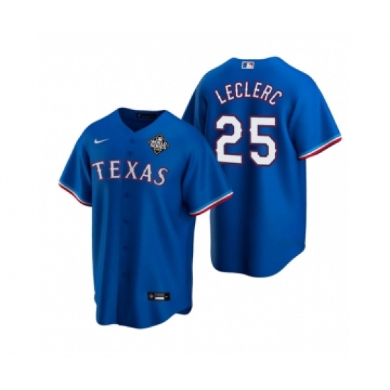 >Men's Texas Rangers #25 José Leclerc Royal 2023 World Series Stitched Baseball Jersey