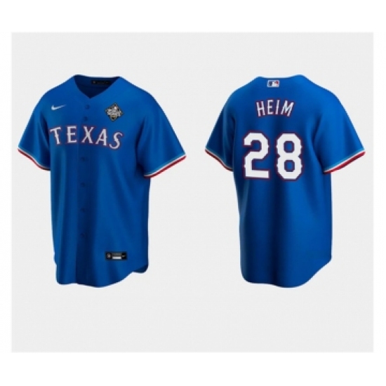 Men's Texas Rangers #28 Jonah Heim Royal 2023 World Series Stitched Baseball Jersey