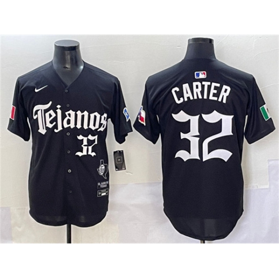 >Men's Texas Rangers #32 Evan Carter Black Mexico 2025 Vapor Premier Limited Stitched Baseball Jersey