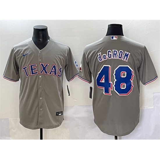 >Men's Texas Rangers #48 Jacob deGrom Gray With Cool Base Stitched Baseball Jersey