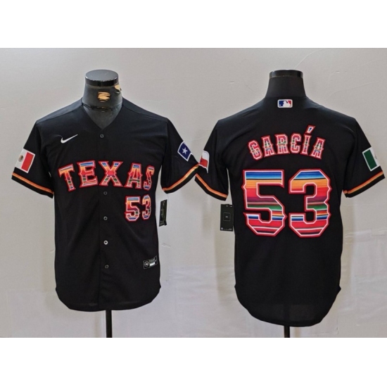>Men's Texas Rangers #53 Adolis Garcia Black Rainbow Mexico Cool Base Stitched Jersey