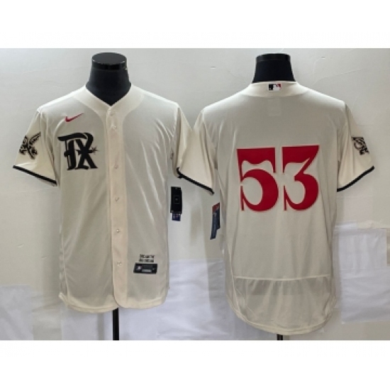 >Men's Texas Rangers #53 Adolis Garcia Cream 2023 City Connect Flex Base Stitched Jersey